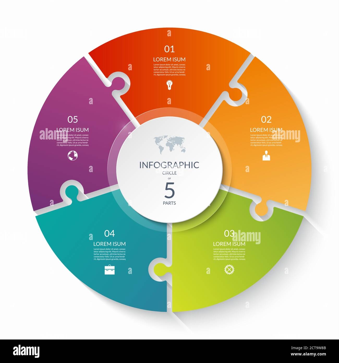 Puzzle Infographic Circle With 5 Steps Options Pieces Five part