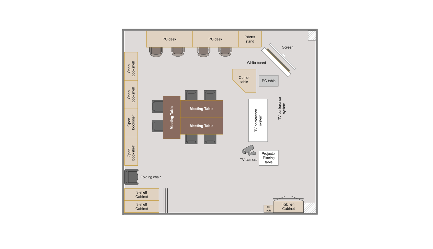 Our classroom diagram template features a variety of elements such as desks, chairs, whiteboards, and more, allowing you to arrange them in the way that best fits your vision. You can easily drag and drop items, resize them, and customize colors to create a layout that works for you.