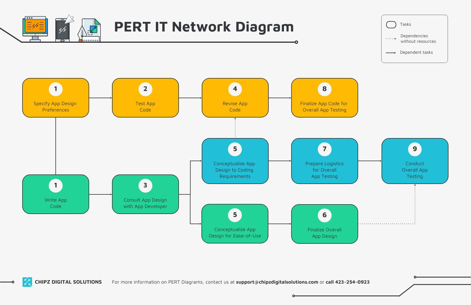 PERT Network Diagram For IT Template Venngage