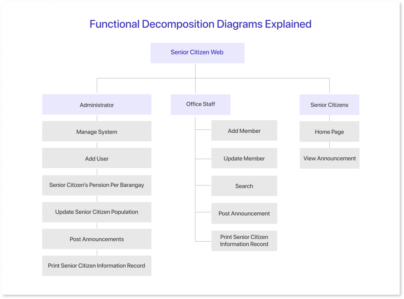With a functional decomposition diagram template, you can easily drag and drop elements, rearrange components, and customize the layout to suit your specific needs. Whether you’re working on a software development project, business process improvement, or organizational restructuring, a template can help you visualize the big picture.