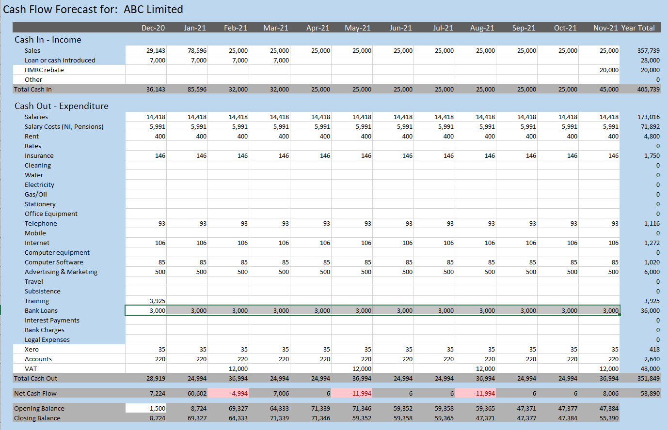 Cash Flow Statement Excel Template Free Downloaded