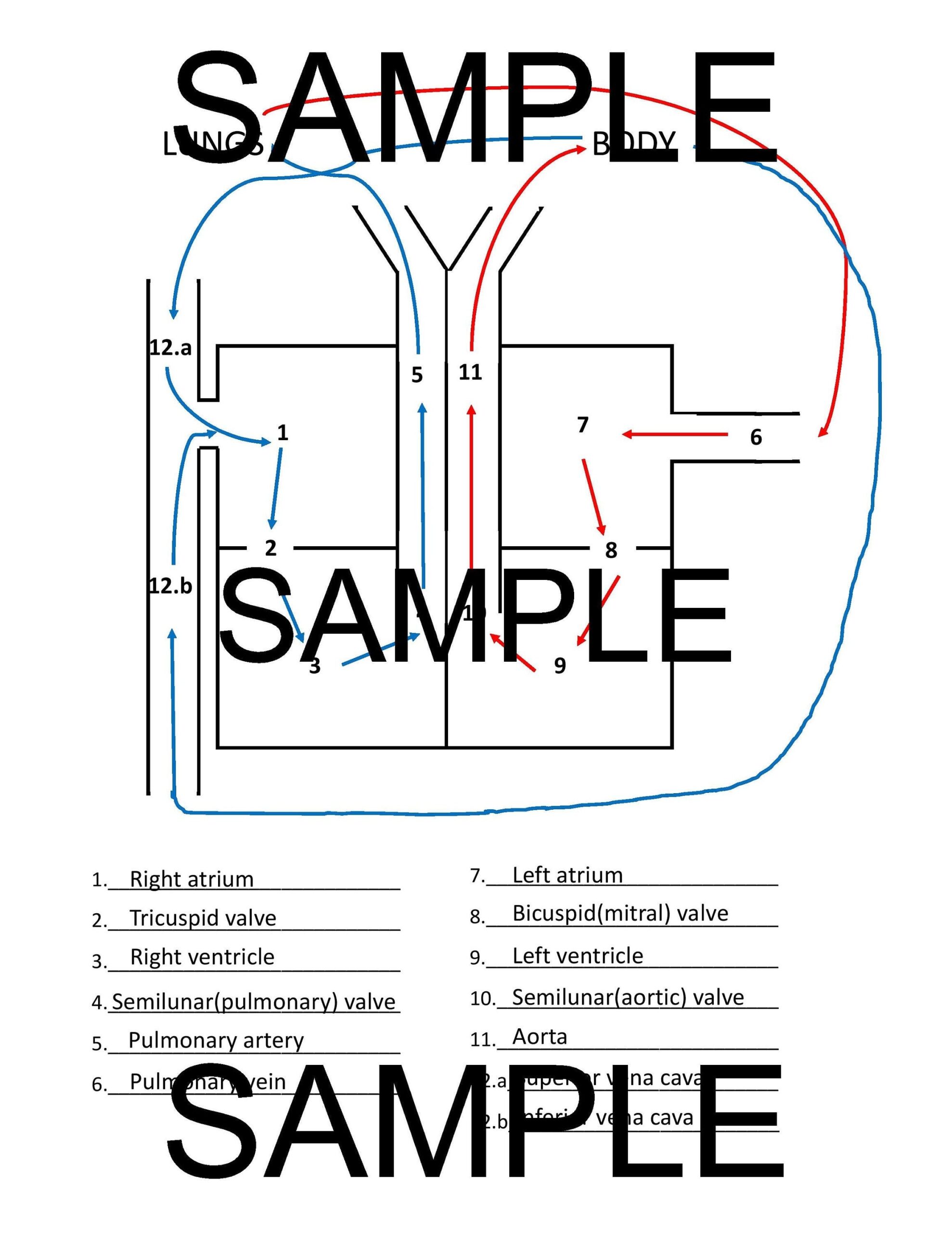 Circulation Of Heart Template U0026 Labeled Diagram Etsy