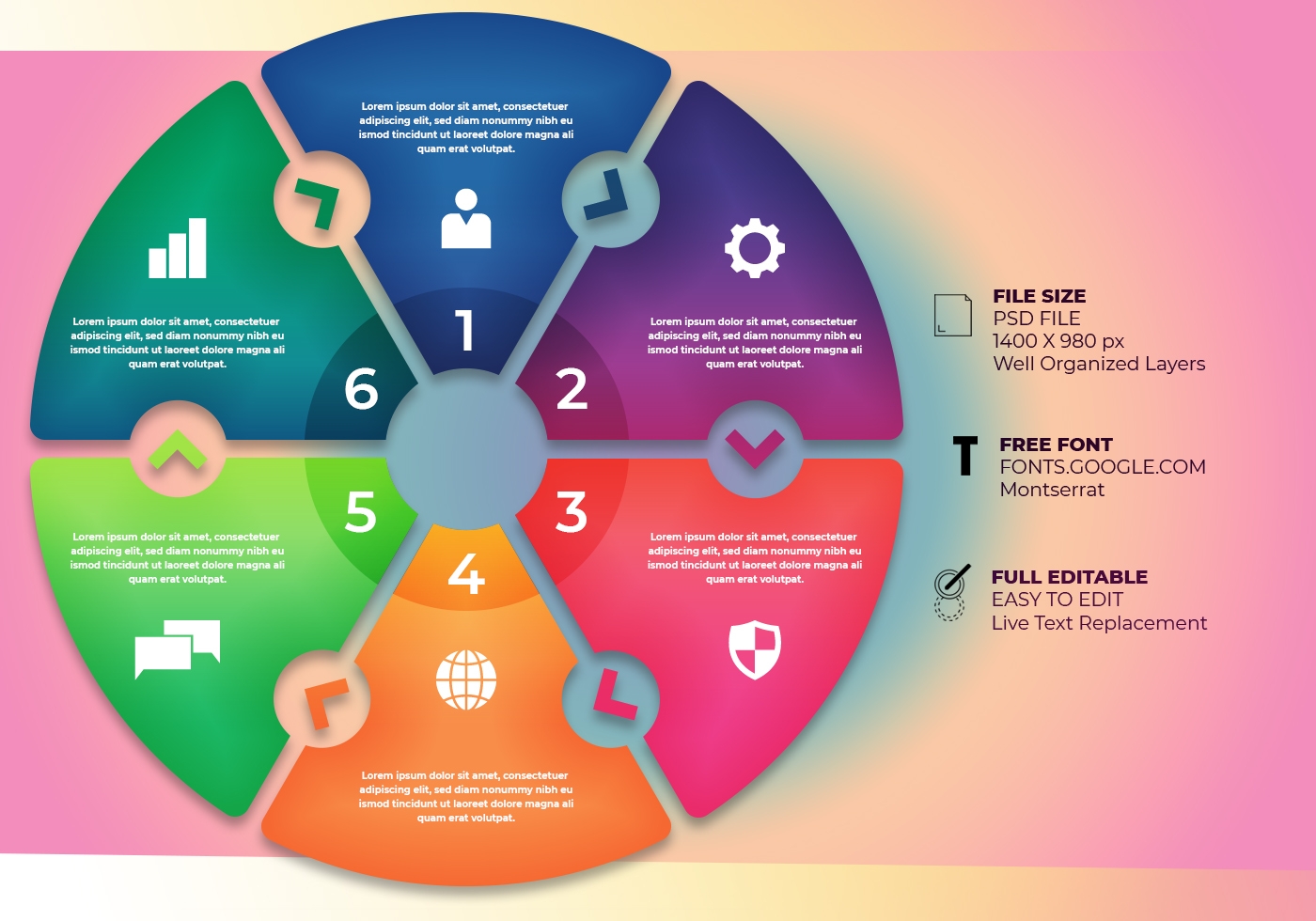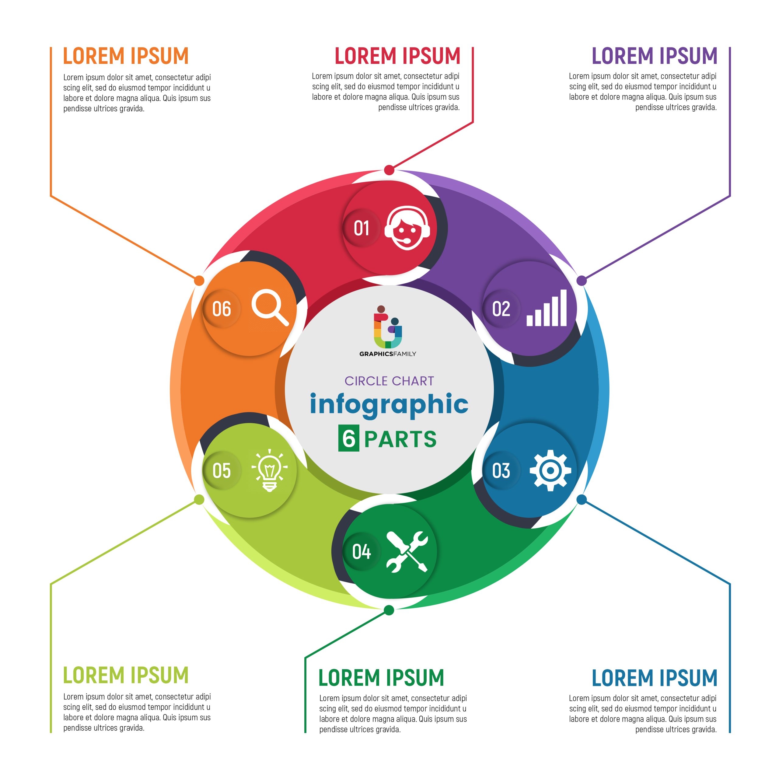 Circle Chart Infographic Template With 6 Parts Vector Image