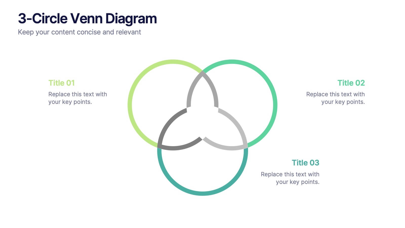 Upgrade your presentation skills with our easy-to-use and customizable Powerpoint 3 Circle Venn Diagram Template. Download now and start creating impactful presentations that will captivate your audience and leave a lasting impression.