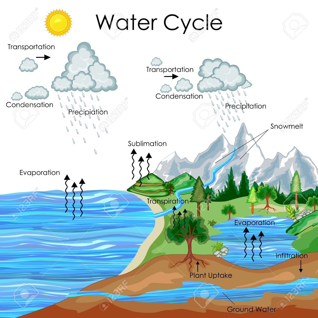 Education Chart Of Water Cycle Diagram Royalty Free SVG Cliparts