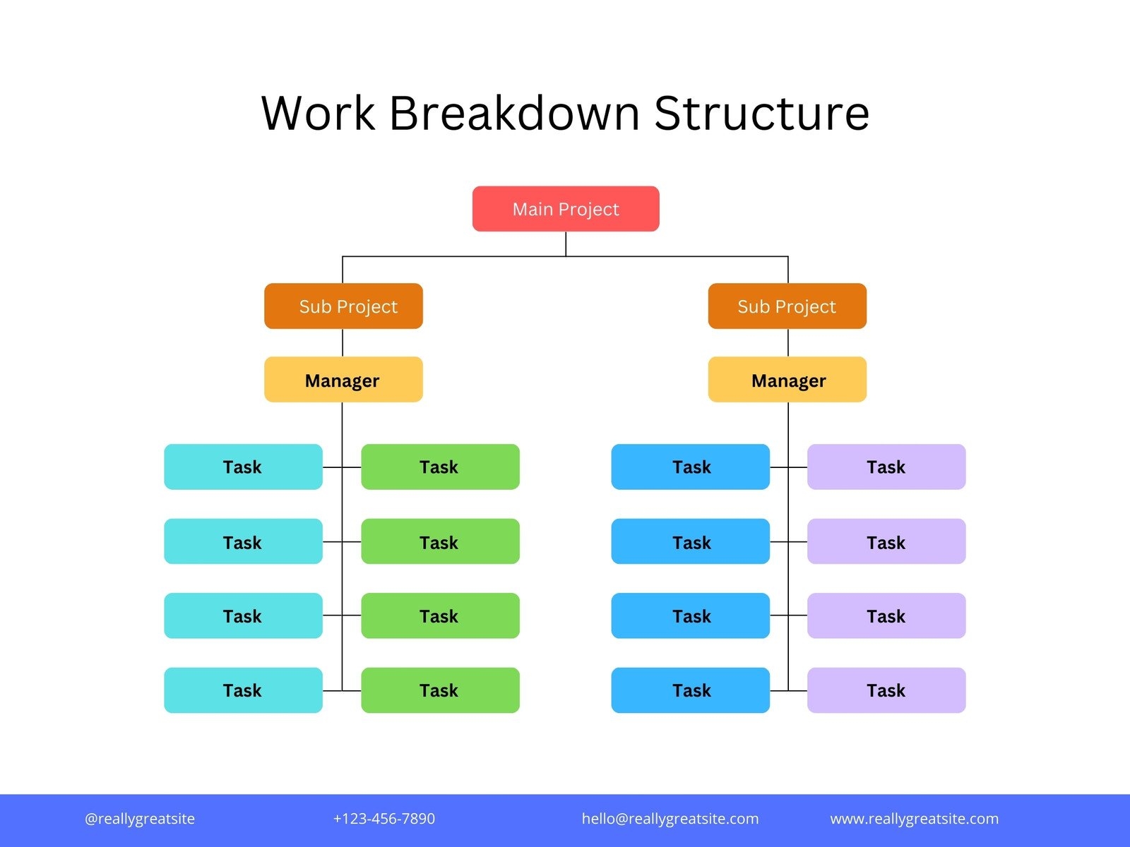By using a WBS diagram template, you can improve communication among team members, stakeholders, and clients. Clear and concise visuals make it easier for everyone to understand the project scope and requirements.
